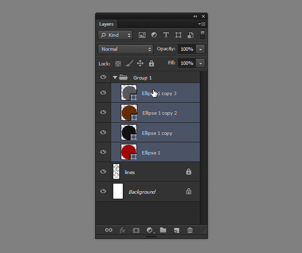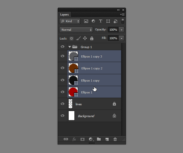 用红色条纹横穿它们。如果将最大的圆圈作为剪贴蒙版,则无需担心其长度。