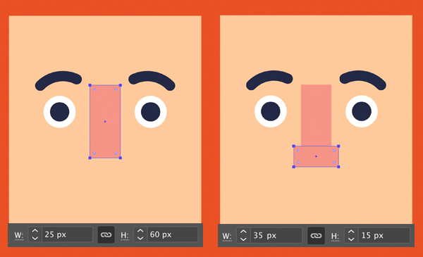 让我们在圣诞节胡桃夹子图标上画些鼻子。借助矩形工具(M)创建25 x 60像素的粉红色矩形。然后添加一个垂直于第一个较小的形状