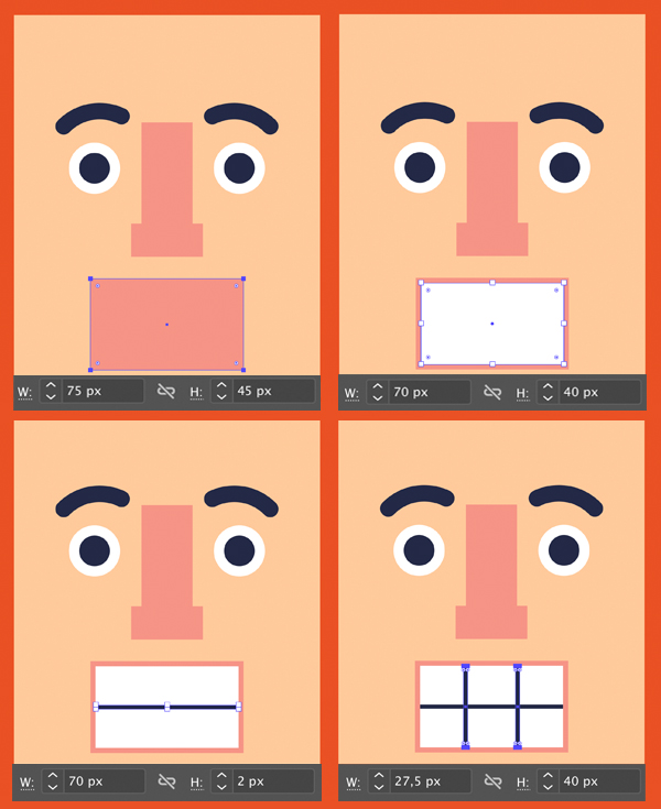 现在,我们将张大嘴!首先制作一个75 x 45像素的粉红色矩形。复制(Control-C),然后粘贴到前面(Control-F),然后将副本缩小到70 x
