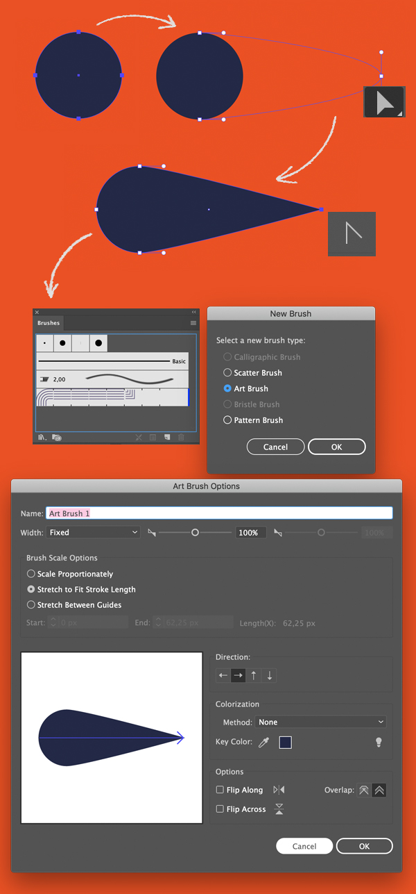 将创建的形状拖放到“ 画笔”面板上,然后在弹出的“ 新画笔”窗口中选择“ 美术画笔 ” 。