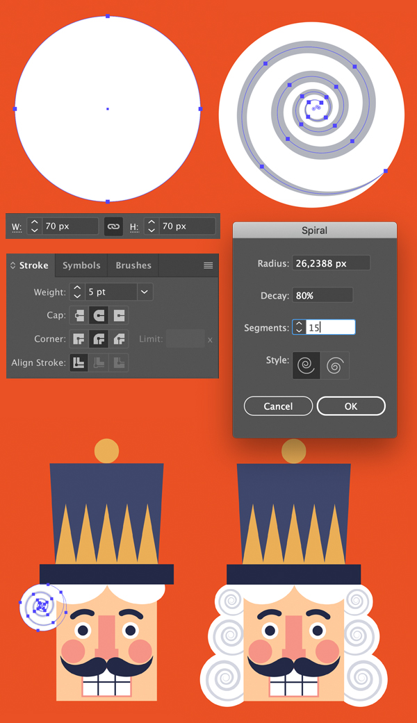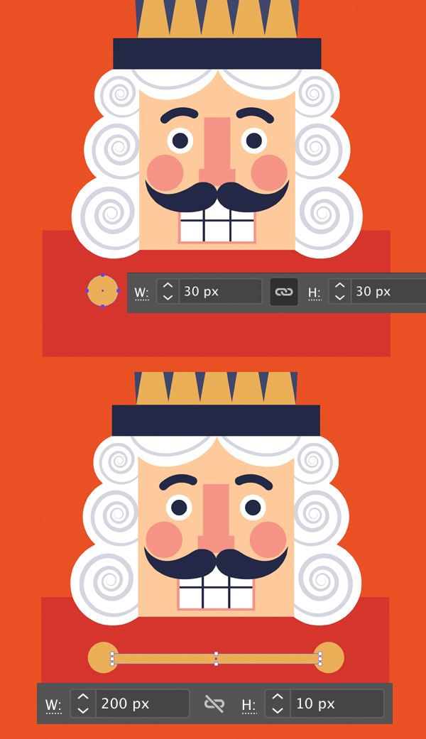 “ 笔触”面板中编辑画笔笔触的宽度,或者稍微移动锚点,以找到圣诞节胡桃夹子图标的胡须的更好位置。