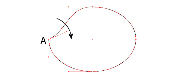 然后将其着色。就拿直接选择工具(A) ,然后选择A点。现在,在按住Option / Alt键的同时,旋转点A的手柄之一。 这些行动将导致平滑点