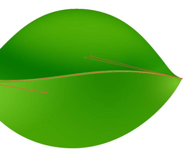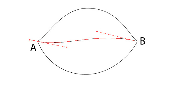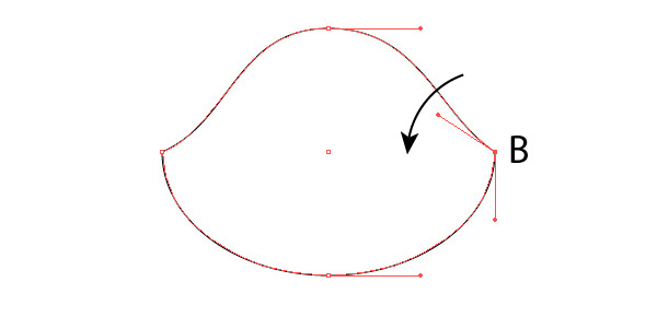 对对象的B点执行相同的操作。 现在,在操纵点及其手柄的位置的同时,为对象提供一片叶子的形状,如下图所示。所有操作均在直接选择工具