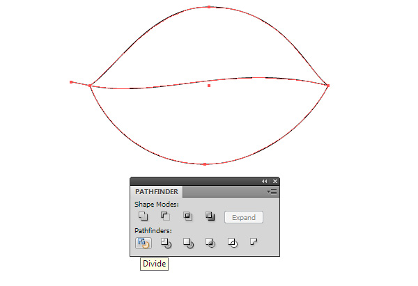 取钢笔工具(P) ,并创建通过弯曲段尽管点A和B。 选择所有创建的对象,然后在“ 路径查找器” 面板中单击“ 划分 ” 。 这些动作会将叶子
