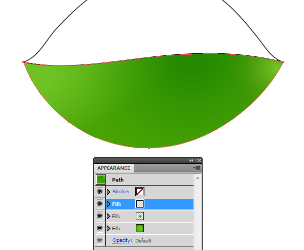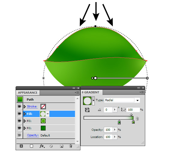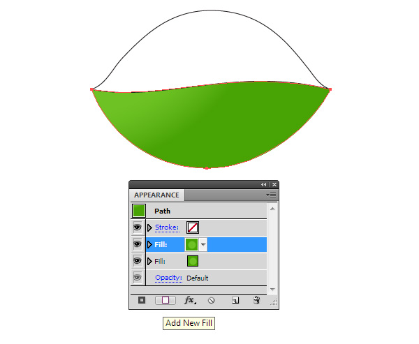 打开外观面板(“窗口”>“外观”),然后单击面板底部的“ 添加新填充”按钮。 改变新填充的径向渐变的颜色为绿色(R = 37,G = 138,