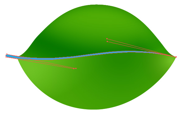 色(R = 114,G = 204,B = 37)到绿色(R = 72,G = 163,B = 4)的径向渐变填充此表单。上部对象是茎表面的微光。