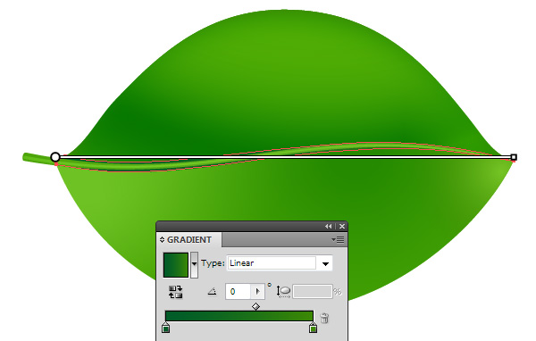 使用钢笔工具(P)创建一个新表格。它应比茎稍宽一些,并应重复其形式。将对象放置在创建的茎的元素下方。使用从绿色(R = 0,G = 92