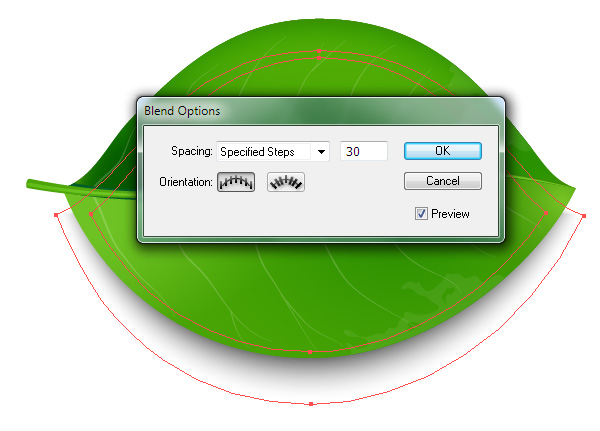 ,请转到“ 对象”>“混合”>“混合选项”…,或在“ 工具”面板中的“ 混合工具(W)”图标上单击两次。 我通常将其设置为少于30步,