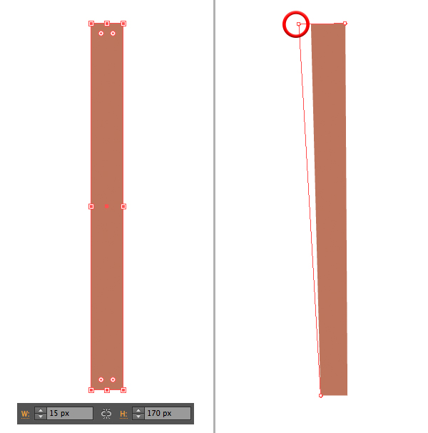 我们将从建筑的前端开始设计建筑物,并创建入口。取矩形工具(M)并制成15×170 px的棕色形状,形成一个狭窄的列。