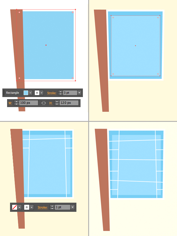 使用“ 线段工具”(\),并通过绘制1磅白色描边的垂直和水平线来向窗框添加细节。