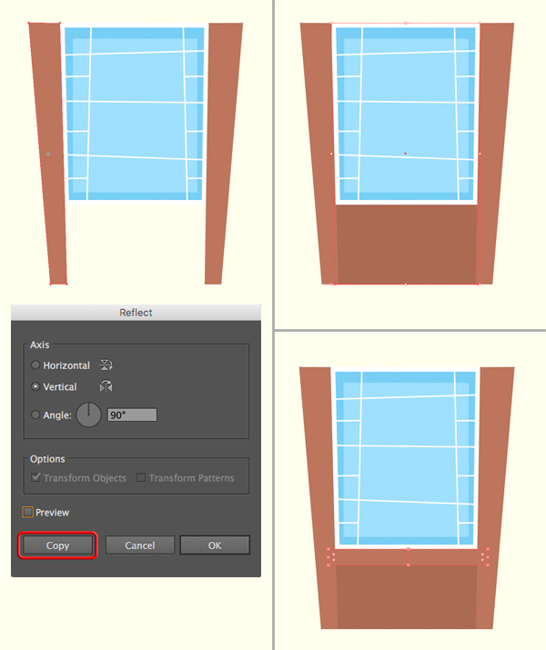 选择我们已经创建和棕色列双击的反映工具(O) 。选择“ 垂直轴”,然后单击“ 复制”以制作我们列的镜像副本,并将其附加到窗口的另一