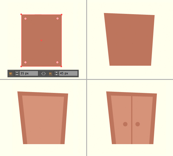 现在我们要进一扇门。继续使用矩形工具(M)制作35×45 px的深褐色形状。