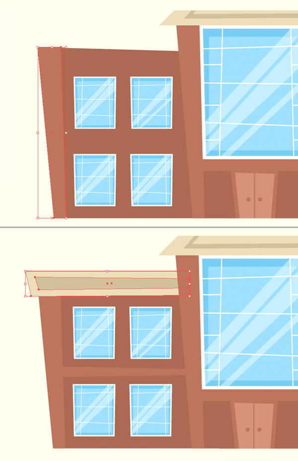 我们的建筑物看起来已经完成,但是我们仍然可以使用Rectangle Tool(M)添加一些较小的细节,例如在这里和那里的深棕色砖块。